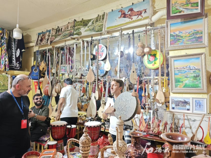 此外,喀什古城的銅器、木器、手工樂(le) 器、葫蘆烙畫等各類傳(chuan) 統非遺技藝,也成為(wei) 土耳其媒體(ti) 人關(guan) 注的焦點。在木器巴紮內(nei) ,手藝人拿起馬克筆、電烙筆、刻刀等工具,在葫蘆上勾好型,隨著工具在表麵遊走,一幅精美獨特的圖案便躍然於(yu) 葫蘆之上。這一幕吸引了一日報總編輯易卜拉欣·瓦爾勒,“這是我第一次看到葫蘆烙畫,太神奇了,僅(jin) 用幾件工具,就能將葫蘆變成一件精美的藝術品。”