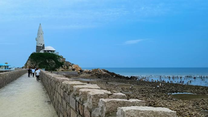 孫雪:這裏的空氣比較清新,海的環境也不錯,很寬闊很藍,我們(men) 大人喜歡拍照,小孩子就在這裏趕海。
