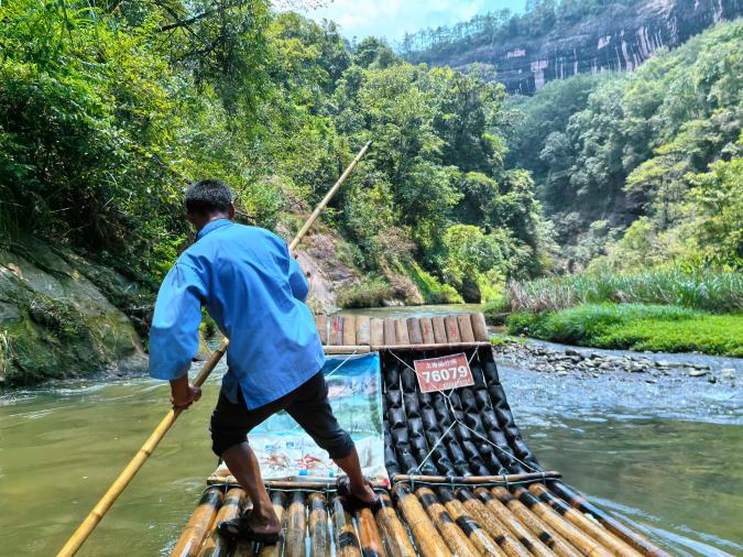 一葉竹排順著溪流蜿蜒向前,黃盛騰唱起了泰寧客家山歌,這首歌名叫《上清溪的歌》,在峽穀深處悠揚回蕩……