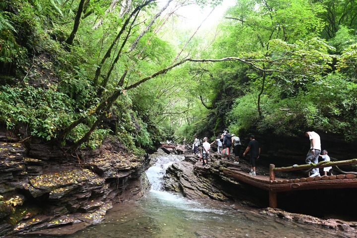 遊客在六盤山國家森林公園遊覽(2024年8月4日攝)。