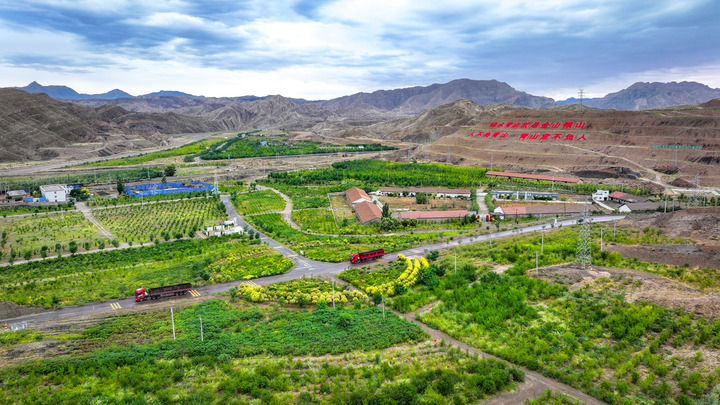寧夏石嘴山市石炭井大磴溝生態修複示範區(2024年8月6日攝,無人機照片)。