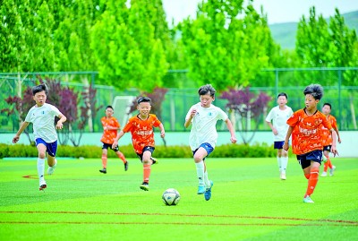 南山生態體(ti) 育公園,青少年足球聯賽激戰正酣。閆鑫攝/光明圖片