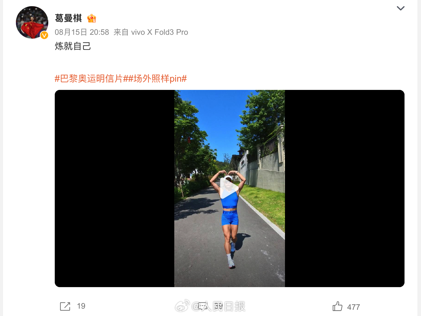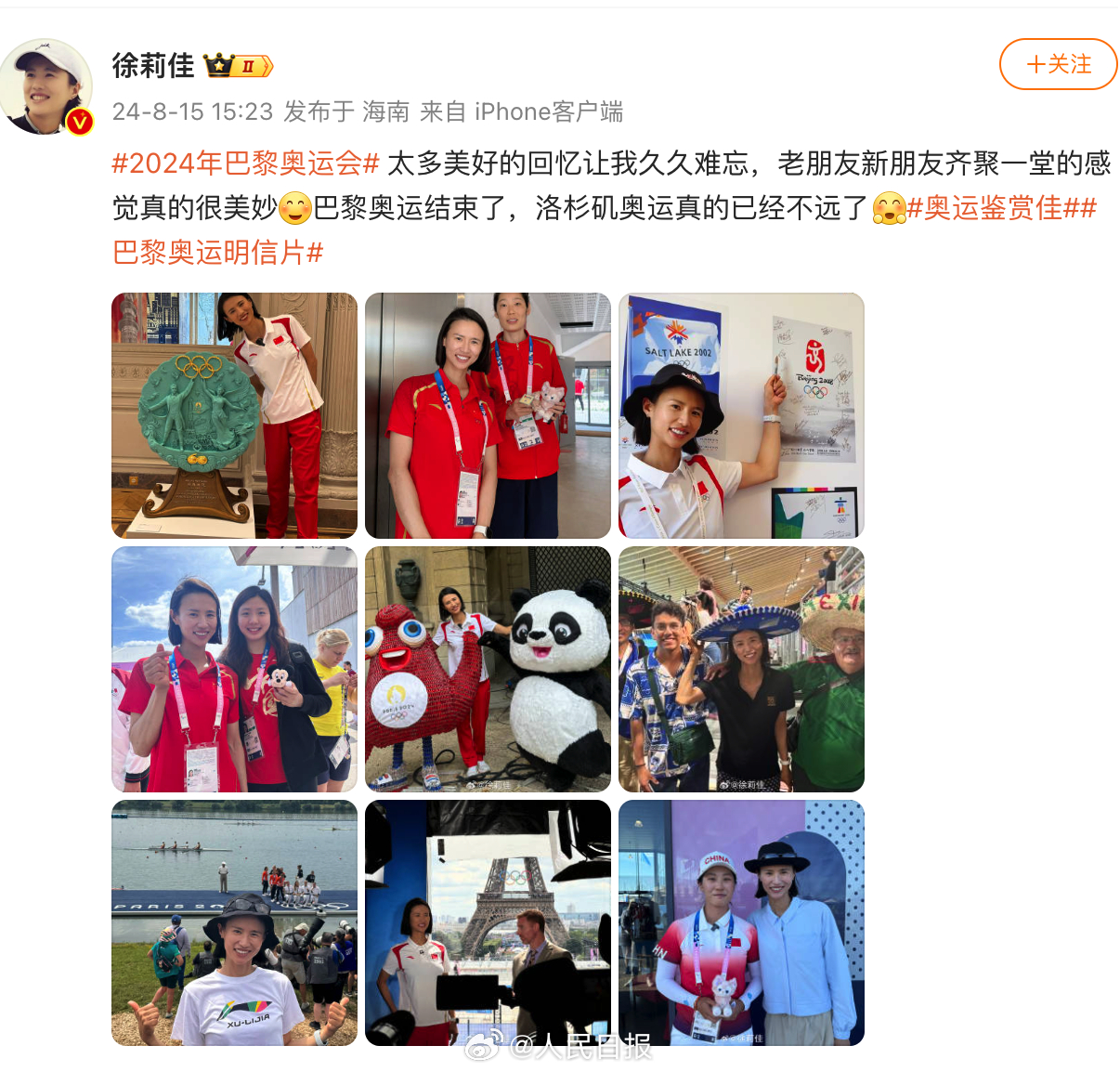 近日,奧運健兒(er) 發文回憶巴黎奧運。