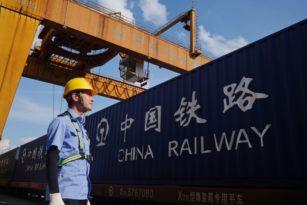 工作人員在南寧國際鐵路港檢查中越班列裝運情況。(國鐵南寧局供圖)