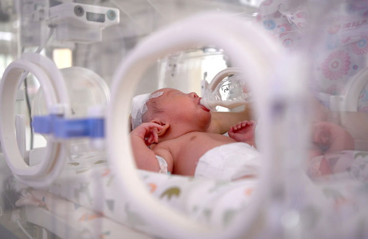 2024年6月1日,在西安國際醫學中心醫院新生兒(er) 科病房,護士為(wei) 新生兒(er) 喂奶。 新華社記者 劉瀟 攝