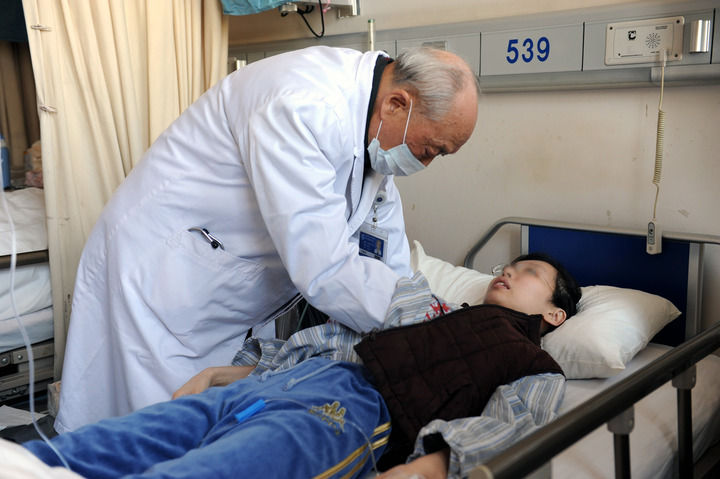瑞金醫院終身教授王振義(yi) 在上海瑞金醫院為(wei) 病人看病(資料照片)。 新華社發
