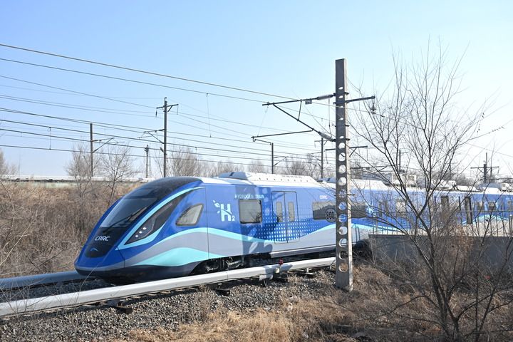 2024年3月21日,我國首列氫能源市域列車在位於(yu) 長春的中車長客試驗線進行運行試驗。新華社發(中車長客股份公司提供)