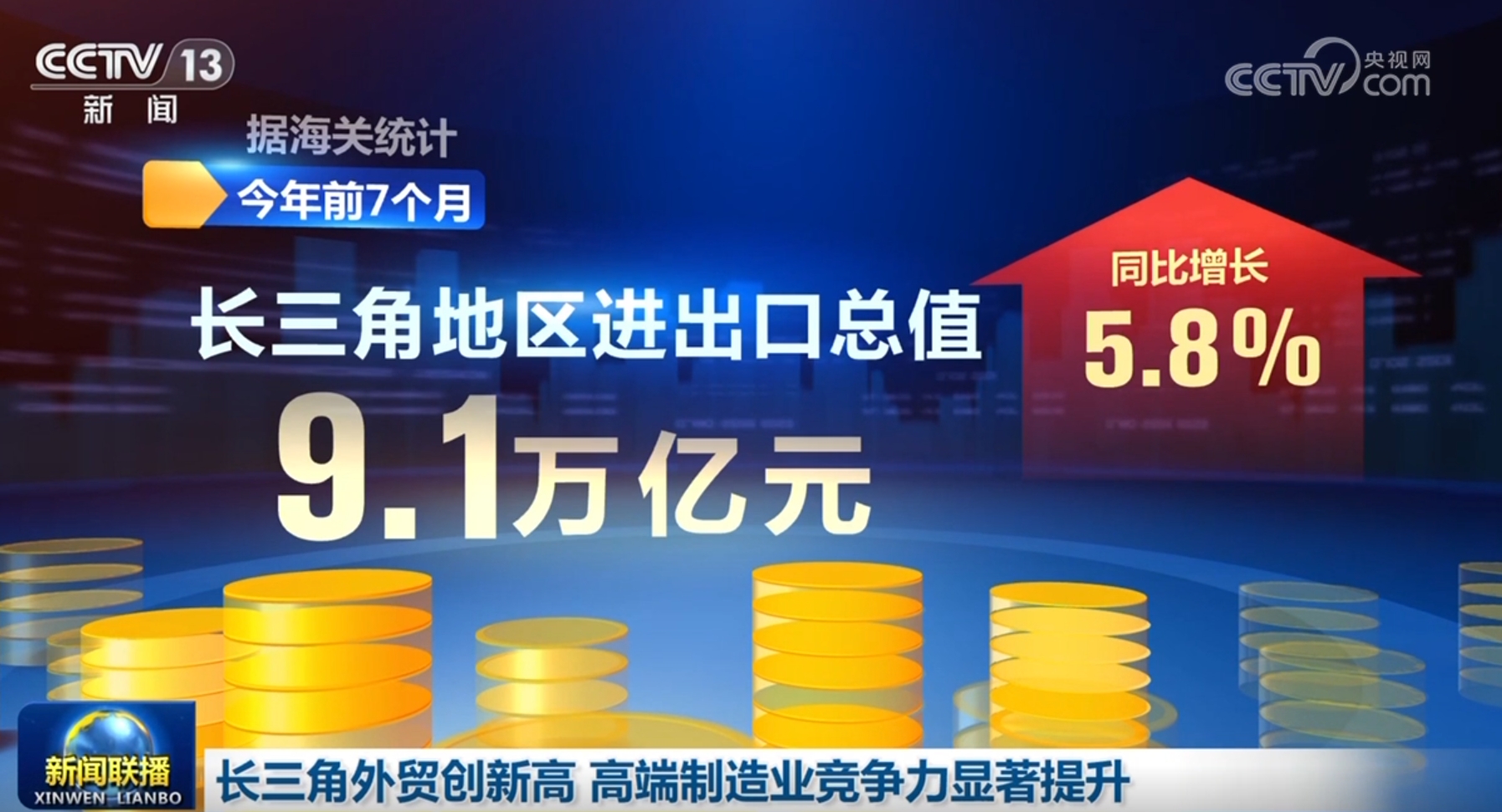 海關(guan) 最新數據顯示,今年前7個(ge) 月,長三角地區進出口規模創曆史新高,汽車、船舶、數控機床等產(chan) 品出口亮眼,長三角地區高端製造業(ye) 國際競爭(zheng) 力加速提升。