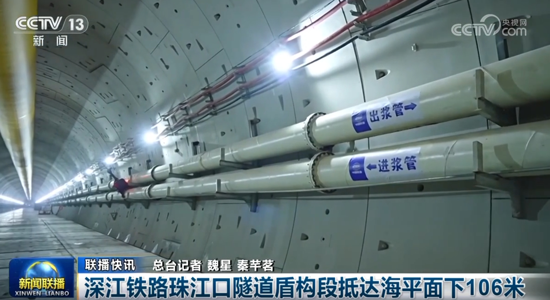深江鐵路珠江口隧道盾構段抵達海平麵下106米