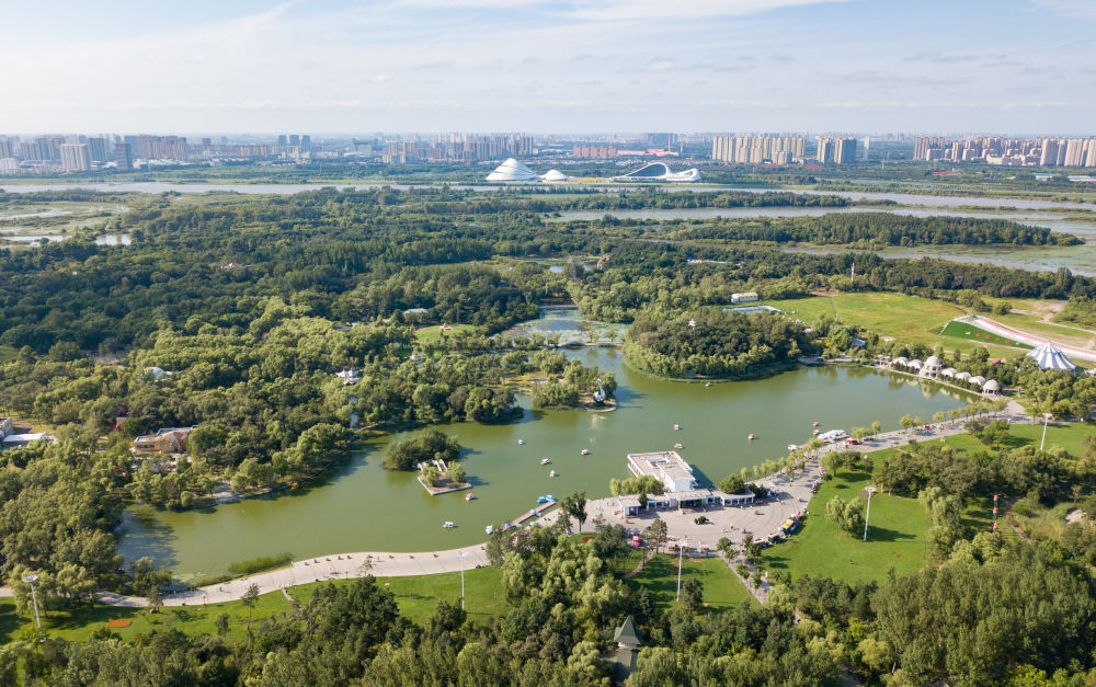 遊人在哈爾濱太陽島風景區的太陽湖上遊覽。新華社記者 王建威 攝