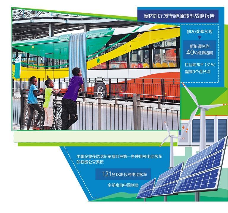 中塞新能源產(chan) 業(ye) 合作持續深化。中國企業(ye) 在達喀爾承建了非洲第一條使用純電動客車的快速公交係統(BRT),121台18米長純電動客車全部來自中國製造。由中國企業(ye) 承建的20個(ge) 車站和維保基地也都設置有中國製造的光伏係統。