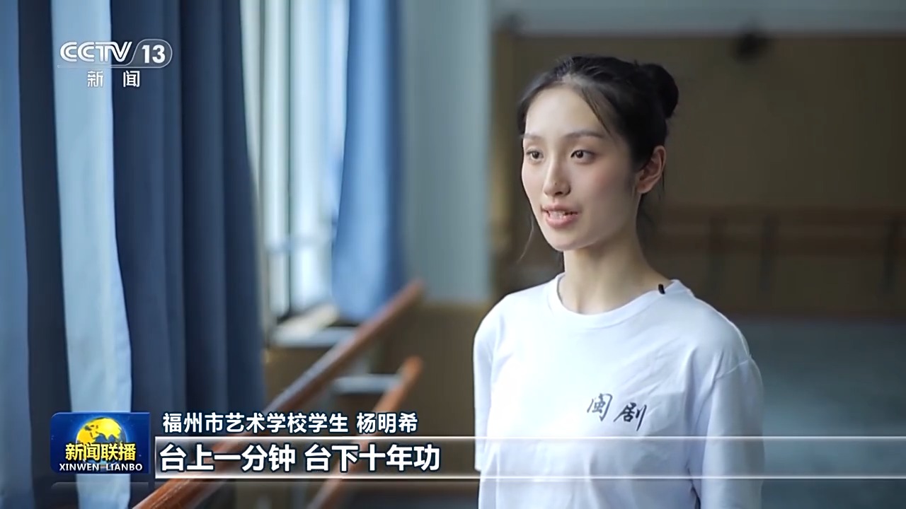 福州市藝術學校學生 楊明希:勤學苦練,振興(xing) 閩劇,這八個(ge) 字時刻提醒我們(men) 台上一分鍾,台下十年功。我們(men) 要學好文化,又要學好專(zhuan) 業(ye) ,學閩劇一定要吃苦才能把基本功打實。