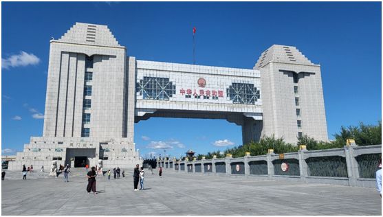 滿洲裏口岸於(yu) 1902年建成,在現國門處先後建設了四代國門,如今的國門建築麵積5905平方米,總長105米,寬46.6米,高43.7米,是我國邊境線上最大的國門,也是弘揚國威、展現國力的標誌性建築。