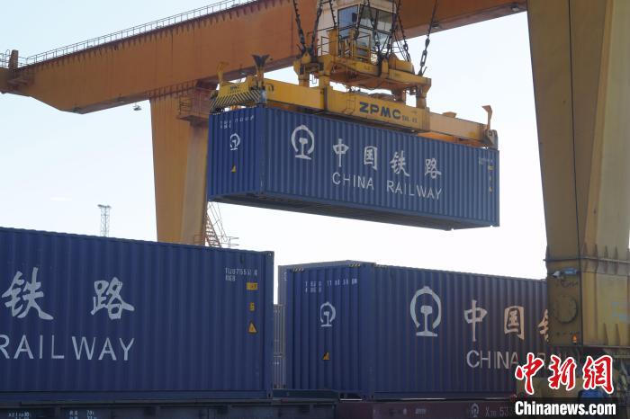 圖為(wei) 龍門吊正將集裝箱吊往中越班列。王以照 攝
