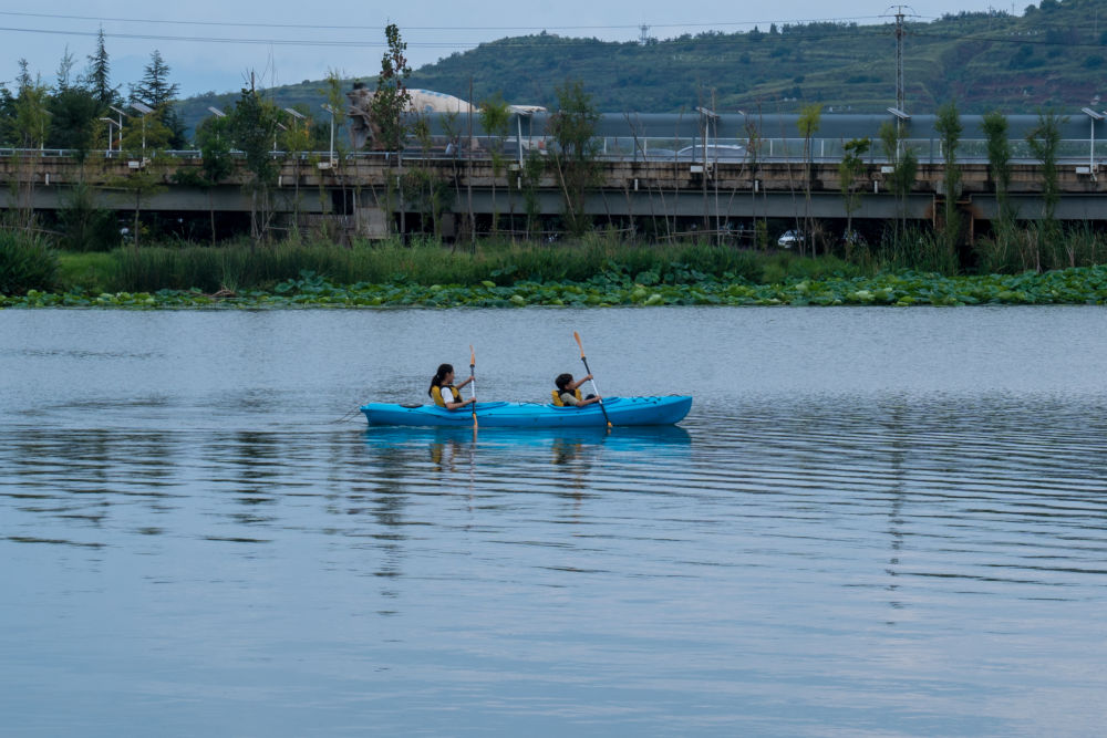 ↑8月25日,遊客在滇池南岸的小漁村遊玩。