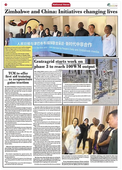 中國—津巴布韋中醫藥中心為(wei) 津巴布韋民眾(zhong) 提供免費的傳(chuan) 統中醫治療,已為(wei) 數千名津巴布韋人提供了有效的醫療服務。
