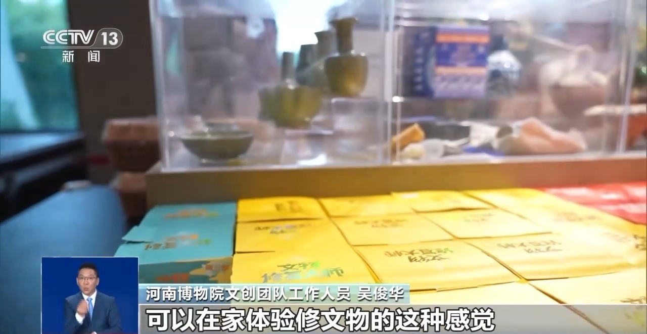河南博物院文創團隊工作人員 吳俊華:這個(ge) 文物修複大師係列,可以讓你在家體(ti) 驗修文物的感覺。
