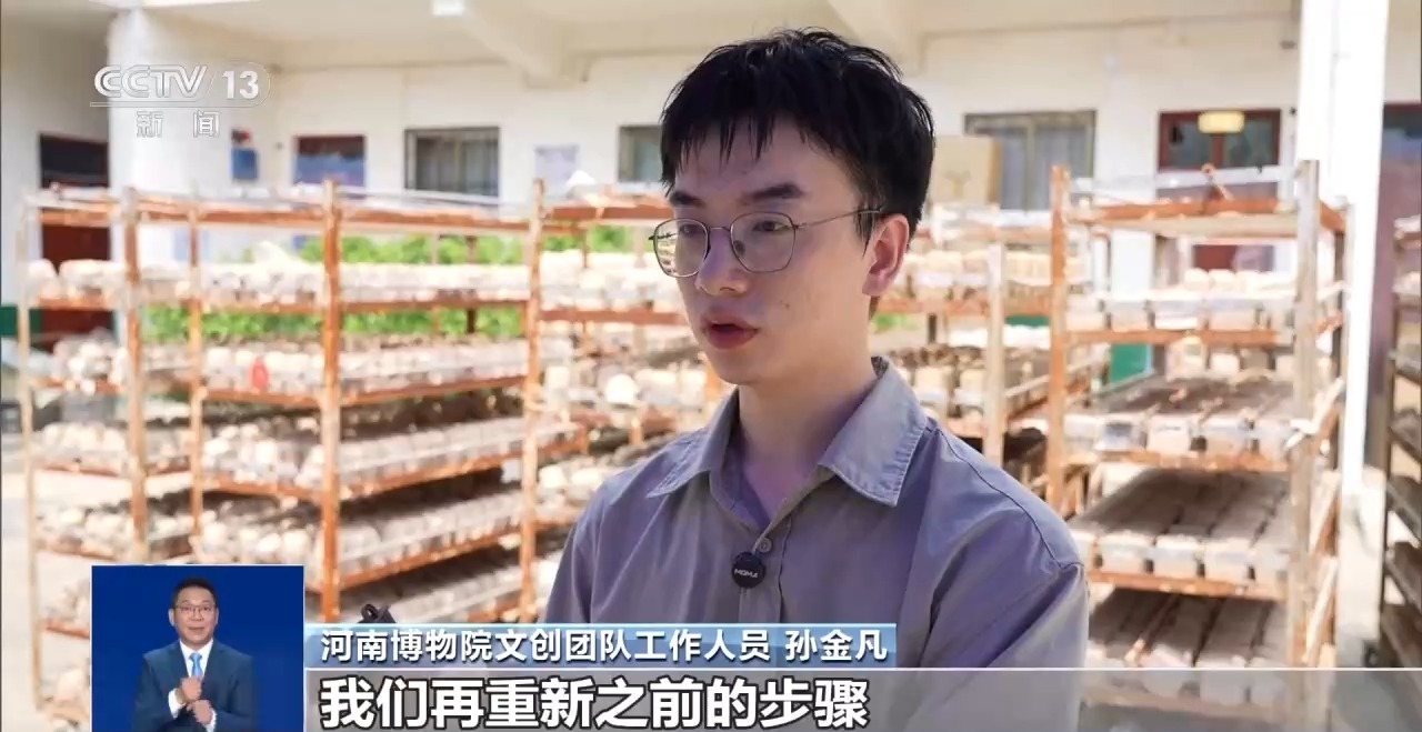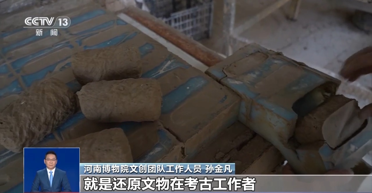 河南博物院文創團隊工作人員 孫金凡:和泥巴、調配方、做試驗,每天都是灰頭土臉的,就是還原文物在考古工作者出土時的那一瞬間。同學就會(hui) 問,還在村裏麵呢?我說對,還在那和泥巴。