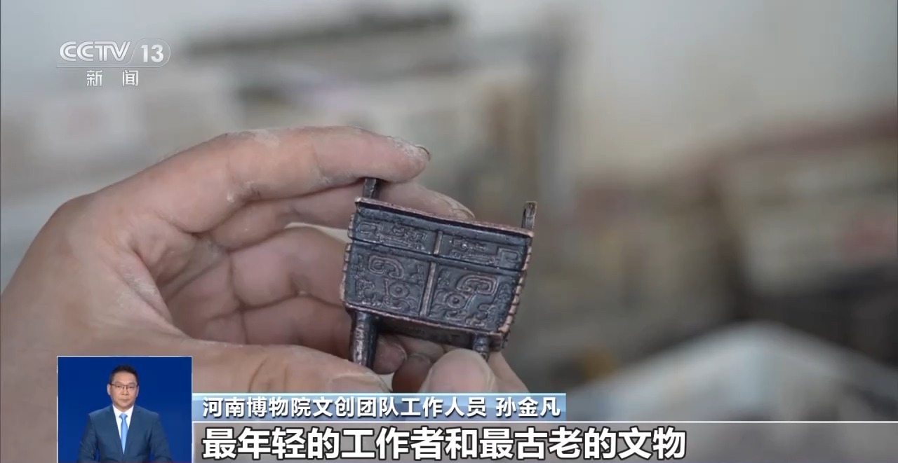 河南博物院文創團隊工作人員 孫金凡:做成的時候感覺很有成就感,最年輕的工作者和最古老的文物,我覺得我這對CP組得還真的挺不錯的。