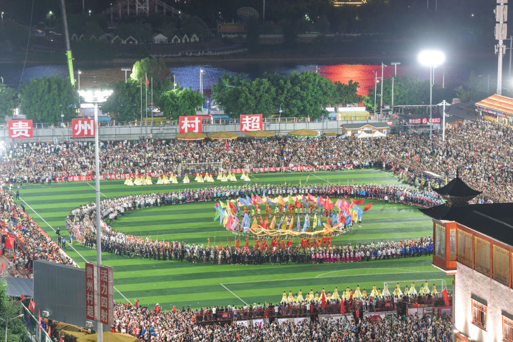 這是7月20日拍攝的2024年貴州“村超”總決(jue) 賽文藝表演。新華社記者 楊文斌 攝