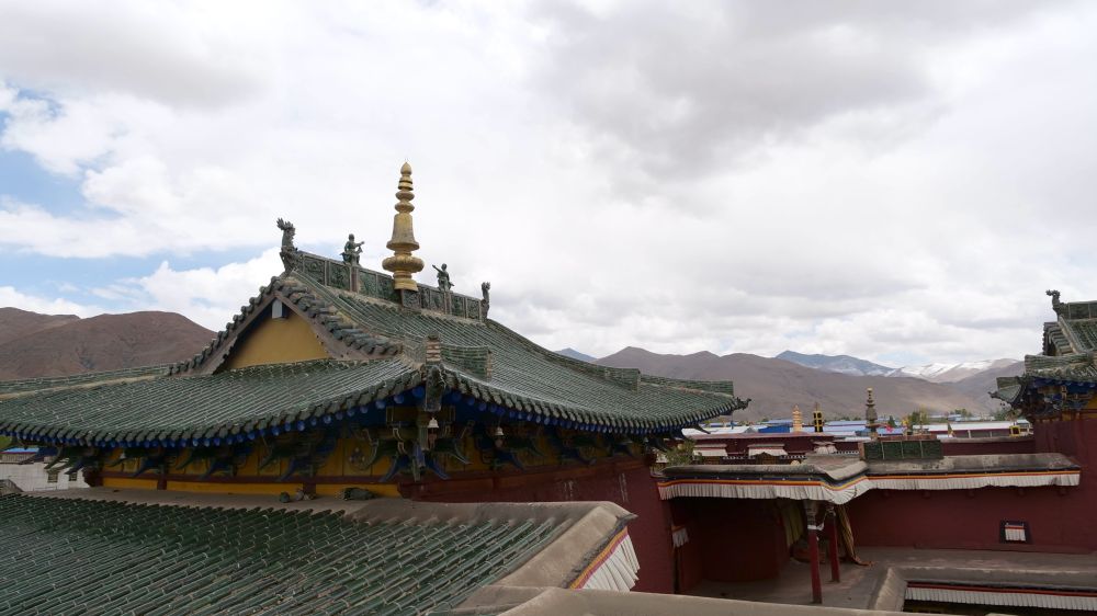 這是夏魯寺重簷歇山式屋頂,呈現典型的漢藏融合風格(2024年5月8日攝)。新華社記者 邱星翔 攝