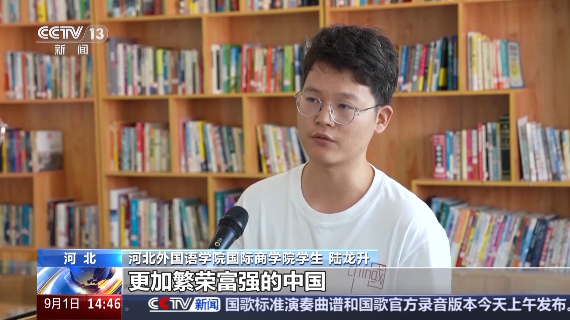 河北外國語學院國際商學院學生 陸龍升:我想通過自己的努力,以後可以讓更多的外國人看到真實的中國,更加繁榮富強的中國。