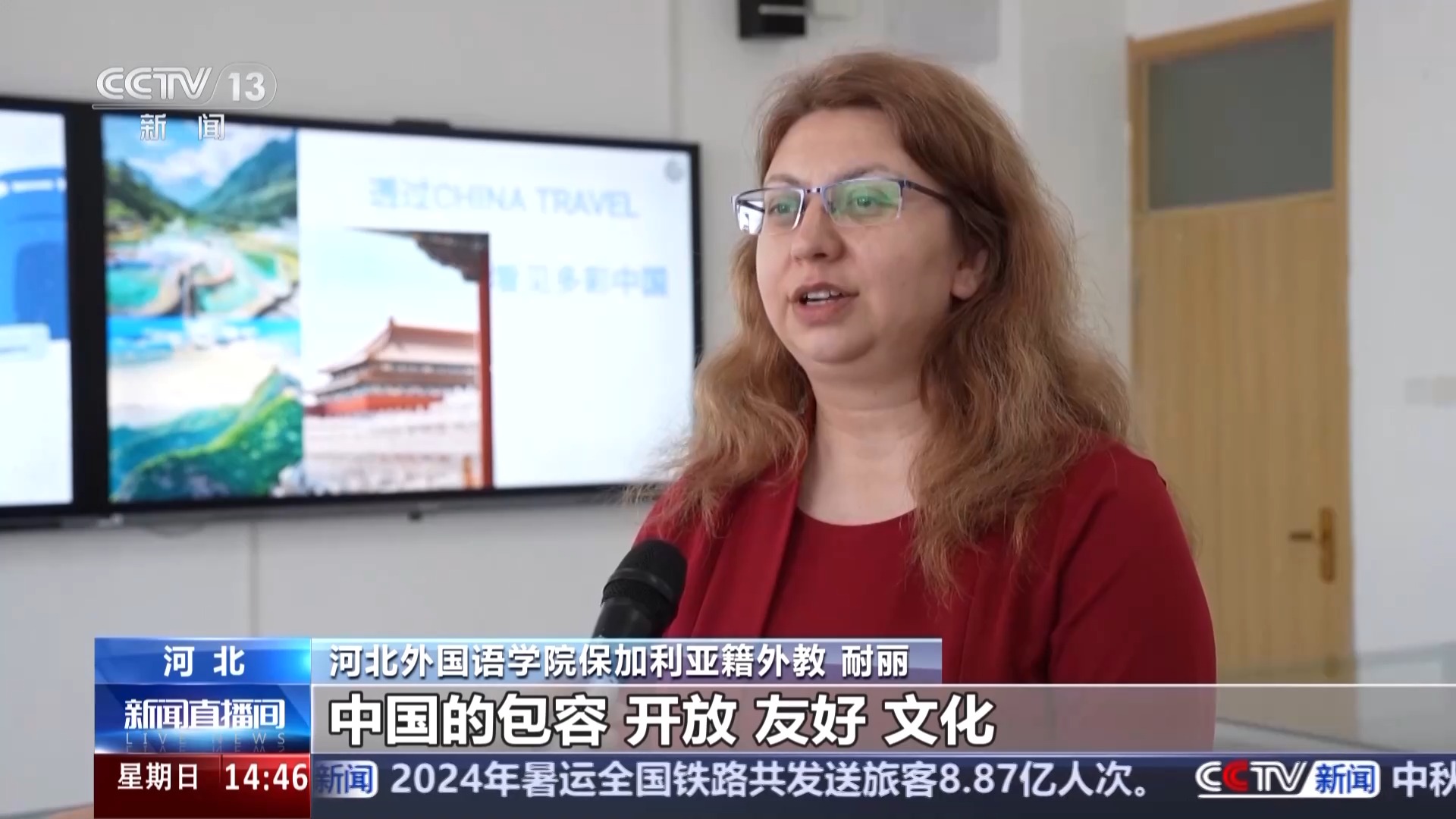 河北外國語學院保加利亞(ya) 籍外教 耐麗(li) :我是9年之前來到中國的,中國的包容、開放、友好、文化讓我非常喜歡在這裏,我在這裏也一直看著中國的變化和發展,我希望跟更多人分享我在這裏感受到的多彩的中國。