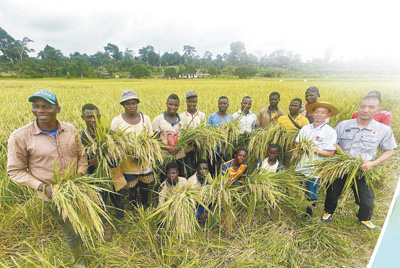 位於(yu) 科特迪瓦迪沃省的格格杜墾區於(yu) 1997年迎來第一批中國農(nong) 業(ye) 技術合作組專(zhuan) 家,經過近30年的努力,墾區已成為(wei) 中科兩(liang) 國農(nong) 業(ye) 合作示範基地和科特迪瓦全國聞名的水稻種植基地。圖為(wei) 中國農(nong) 業(ye) 專(zhuan) 家與(yu) 當地農(nong) 民在水稻田中慶祝豐(feng) 收。