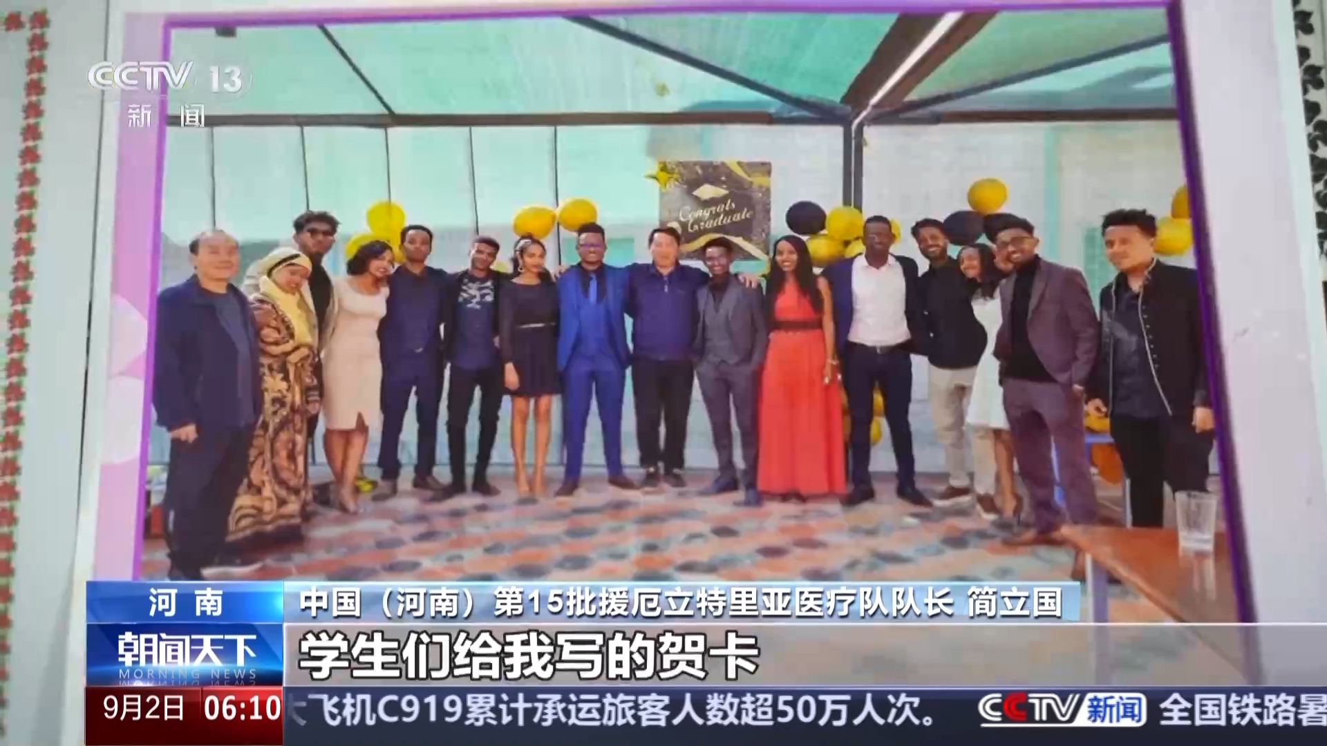 中國(河南)第15批援厄立特裏亞(ya) 醫療隊隊長 簡立國:這是我們(men) 醫療隊培養(yang) 的16名醫學生,他們(men) 現在都成為(wei) 厄立特裏亞(ya) 的中堅力量了。學生們(men) 給我寫(xie) 的賀卡也是中厄友誼的見證。