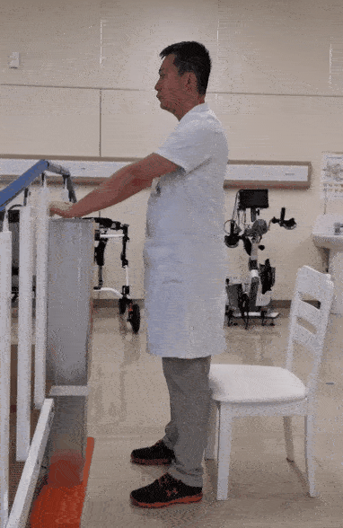 雙腳分開,雙手扶在牆麵或扶手上,保證平衡。足跟緩慢抬起,停留一會(hui) 兒(er) ,然後恢複至初始動作。此為(wei) 一個(ge) 完整動作。8~12次/組,做3組。
