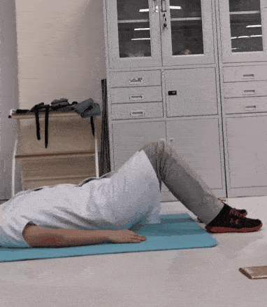 平躺在墊子上,雙腿分開,與(yu) 肩同寬,雙手置於(yu) 身體(ti) 兩(liang) 側(ce) 。緩慢向上做抬臀動作,停留一會(hui) 兒(er) ,然後恢複至初始動作。此為(wei) 一個(ge) 完整動作。8~12次/組,做3組。