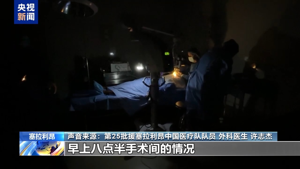 第25批援塞拉利昂中國醫療隊隊員 外科醫生 許誌傑:做眼科手術第二台,(患者)還沒打麻醉,突然停電了,大家就打著手機光,用著應急電源在做手術。