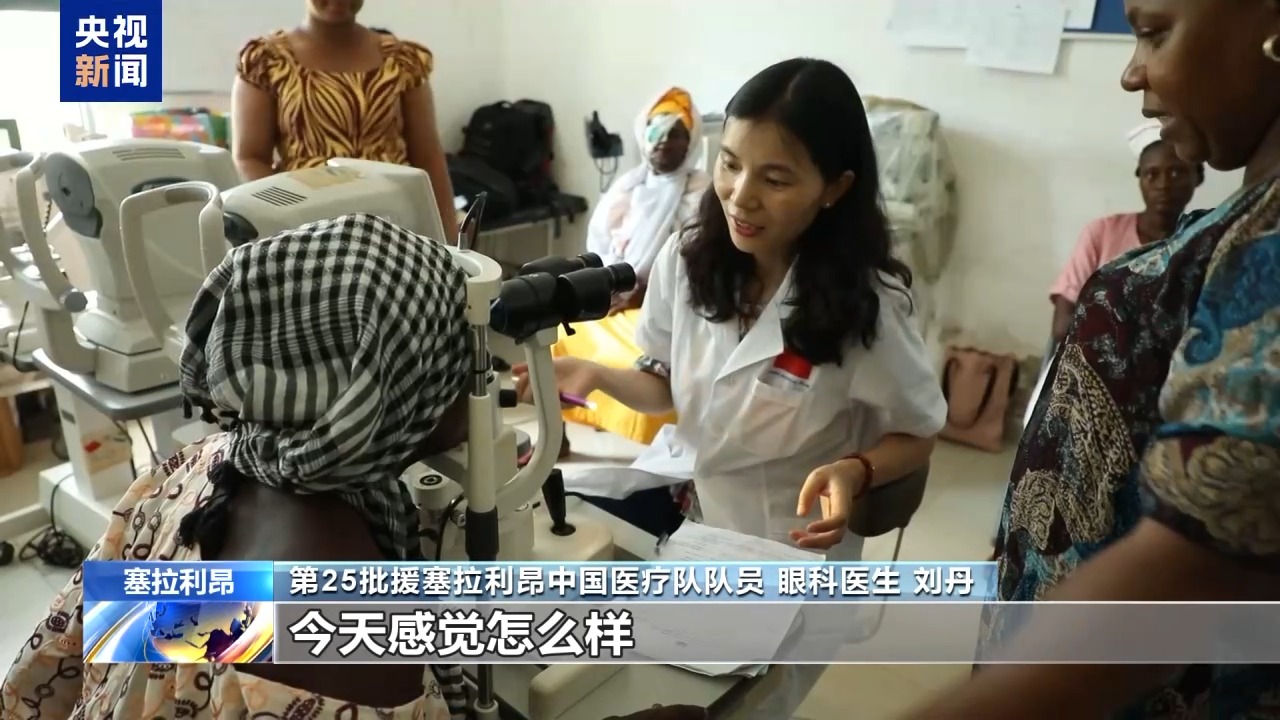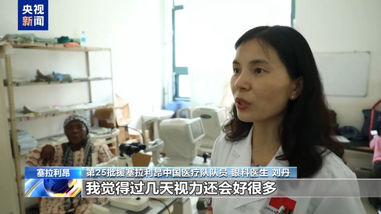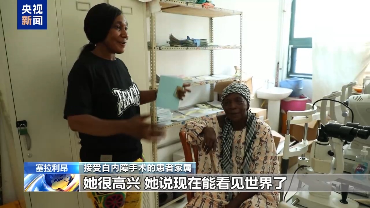 第25批援塞拉利昂中國醫療隊隊員 眼科醫生 劉丹:這是昨天一個(ge) (接受)白內(nei) 障手術的病人,她術前的視力隻能看見眼前的手在動,手指頭都分辨不太清楚。今天一打開(紗布)視力是0.3,我覺得過幾天視力還會(hui) 好很多。