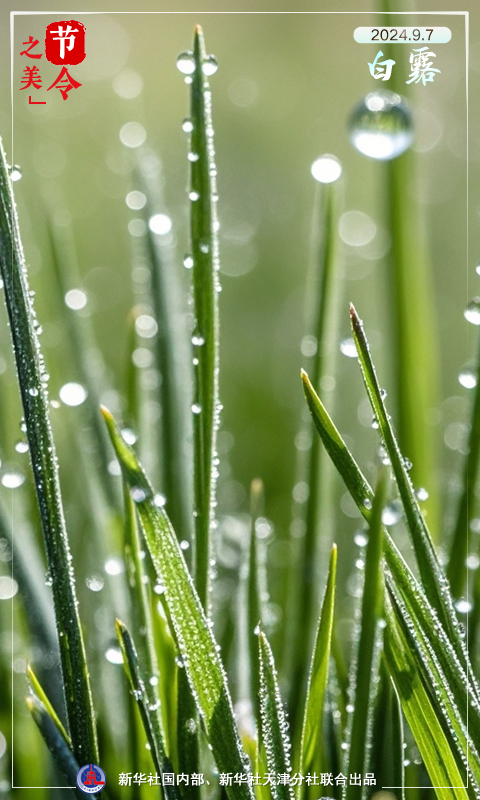 白露是秋季的第三個(ge) 節氣,因秋氣漸深,溫差較大,接近地麵的水蒸氣夜間遇冷凝結成水珠而得名。此時節,已經隨處可見晨光下散落在草葉上的晶瑩露珠。