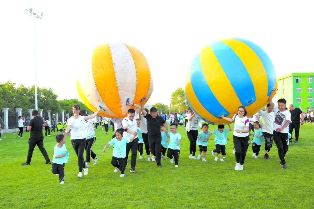遼寧省鞍山市幼兒(er) 園組織幼兒(er) 和家長一起快樂(le) 做遊戲。