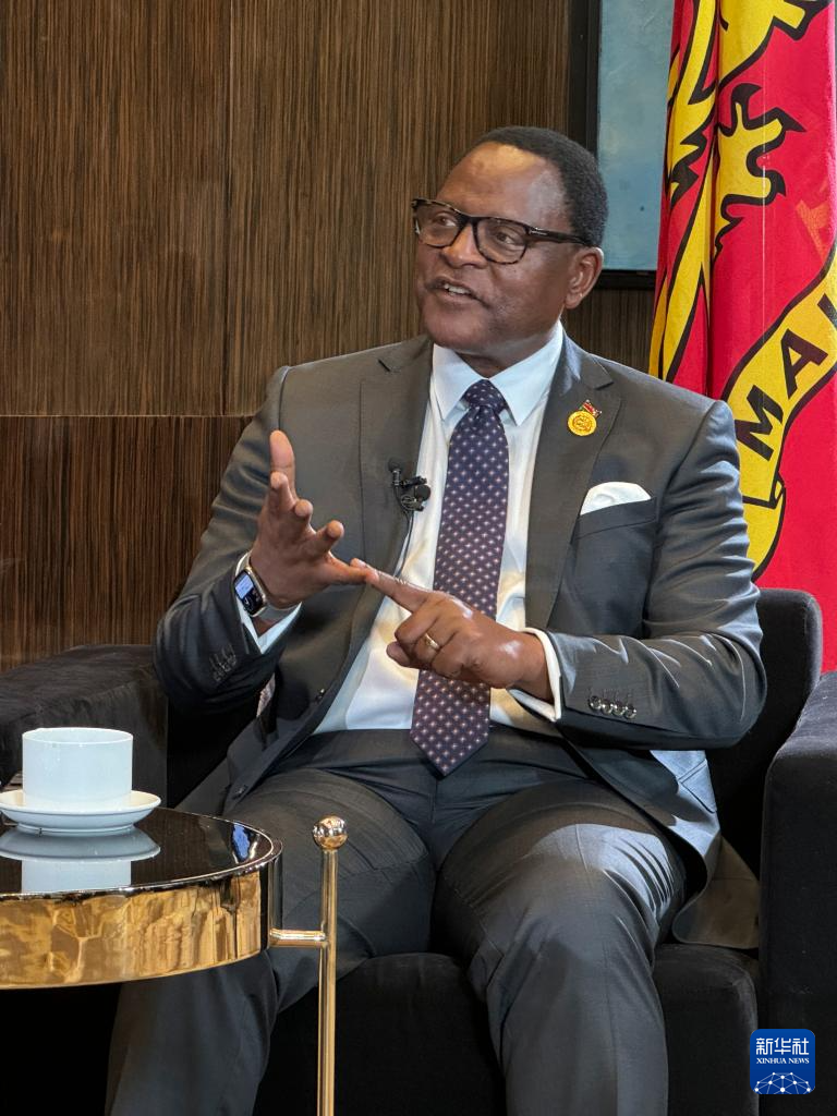 9月3日,來華出席中非合作論壇北京峰會(hui) 的馬拉維總統拉紮勒斯·查克維拉在北京接受新華社記者采訪。新華社記者 王普 攝