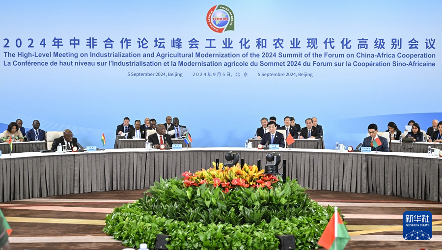 9月5日下午,中非合作論壇北京峰會(hui) 工業(ye) 化和農(nong) 業(ye) 現代化高級別會(hui) 議在北京國家會(hui) 議中心舉(ju) 行。中共中央政治局常委、全國政協主席王滬寧與(yu) 南非總統拉馬福薩共同主持會(hui) 議。新華社記者 殷博古 攝