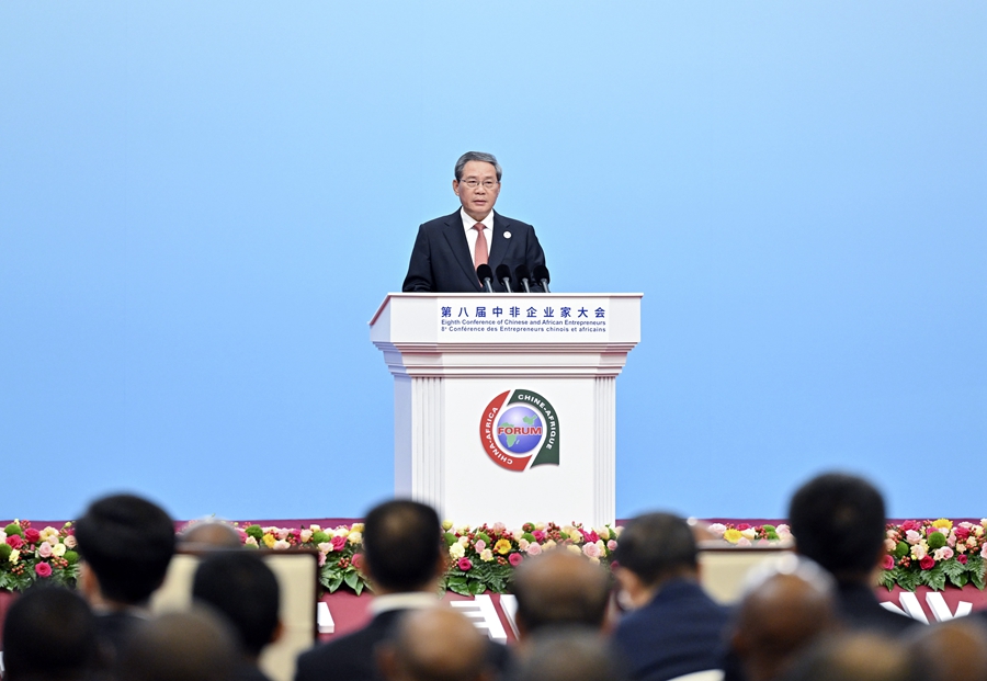 9月6日上午,國務院總理李強在北京國家會(hui) 議中心出席第八屆中非企業(ye) 家大會(hui) 開幕式並致辭。新華社記者 殷博古 攝