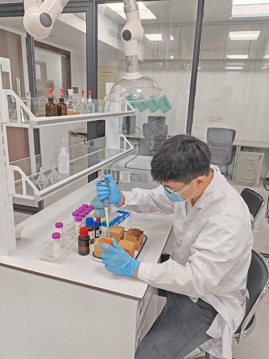 2024年7月8日,研究人員在杭州良渚古城遺址世界遺產(chan) 監測管理中心的潮濕環境土遺址保護實驗室進行試驗。 新華社記者 馮(feng) 源 攝