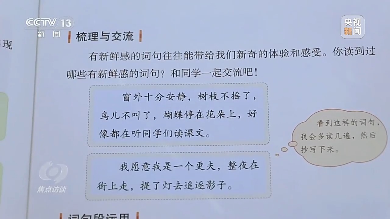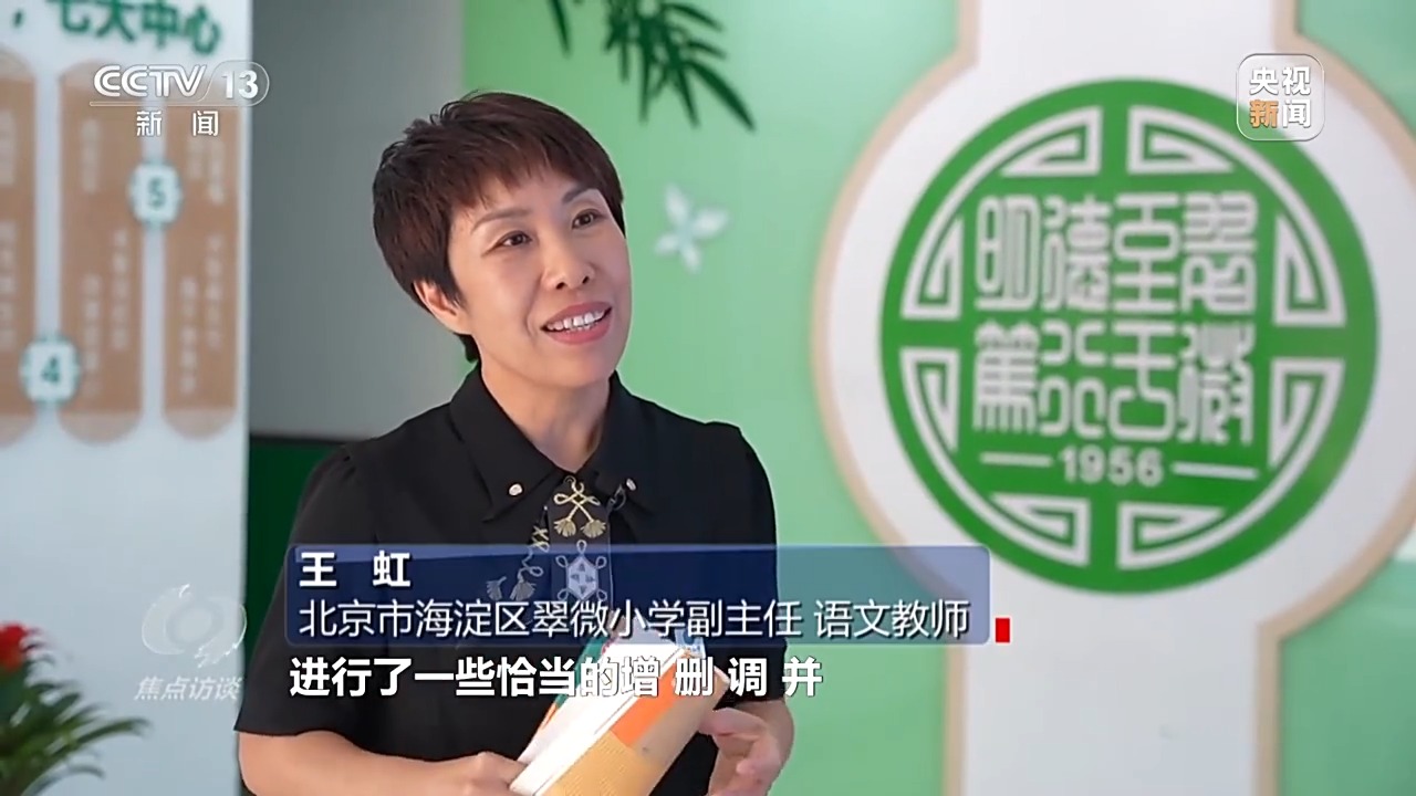 北京市海澱區翠微小學副主任、語文教師 王虹:拿到教材,我們(men) 心裏特別踏實,我們(men) 發現這個(ge) 教材進行了一些恰當的增、刪、調、並。一年級上學期識字量上原來是300個(ge) ,現在280個(ge) ,還有一些對學生理解起來有一些難度的課文,也進行了刪減或者調整。