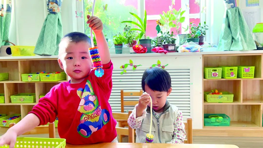 幼兒(er) 在托班跟著教師做遊戲。
