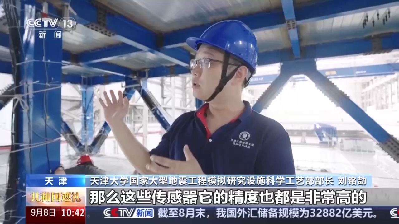 天津大學國家大型地震工程模擬研究設施科學工藝部部長 劉銘劼:我們(men) 安裝的傳(chuan) 感器加在一起有500多個(ge) ,那麽(me) 這些傳(chuan) 感器它的精度也都是非常高的,比方說我們(men) 測量結構變形的傳(chuan) 感器,它的最小測量的值是0.1個(ge) 毫米,比我們(men) 頭發絲(si) 直徑還要再小。