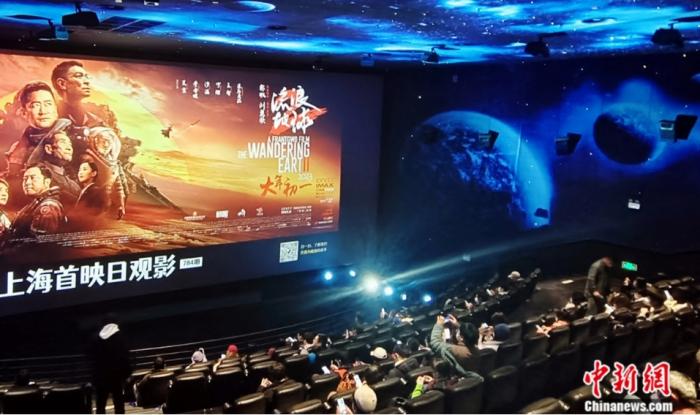 2023年1月22日,影迷在上海一電影院觀看國產(chan) 科幻片《流浪地球2》。陳玉宇 攝