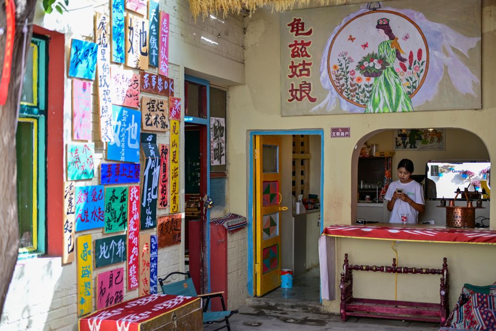 來到龜茲(zi) 小巷,各式各樣、色彩明豔的木門總能讓遊人目光停駐,推門入院又是另一番風景。走進“爺爺的家”旅遊家訪院,傳(chuan) 統古建築氣息迎麵而來,這座有上百年曆史的民居融和了多民族建築藝術特點,門窗設計、前簷廊木結構等與(yu) 我國傳(chuan) 統木構建築一脈相承。