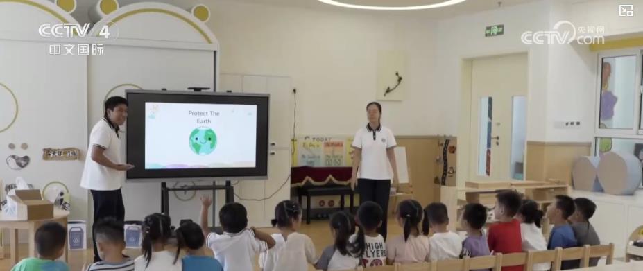 在雄安白塔幼兒(er) 園裏,美國外教佩雷斯正在教孩子們(men) 如何進行垃圾分類。
