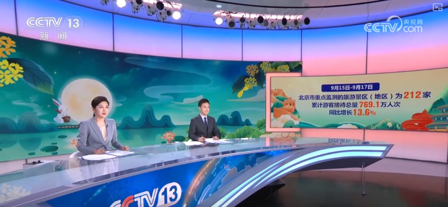 通過數據盤點各地出遊的情況,北京市文旅局統計,9月15日至17日,北京全市重點監測的旅遊景區(地區)為(wei) 212家,累計遊客接待總量769.1萬(wan) 人次,同比增長13.6%,比2019年增長1.4倍。