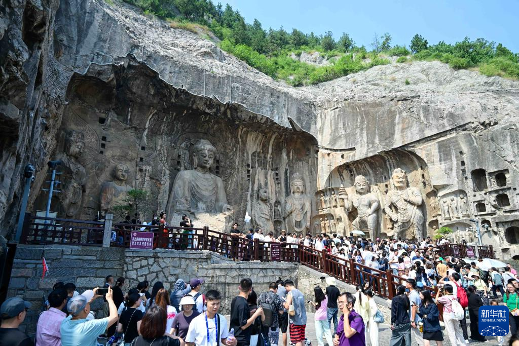 9月16日,遊客在河南省洛陽市龍門石窟景區內(nei) 遊覽。