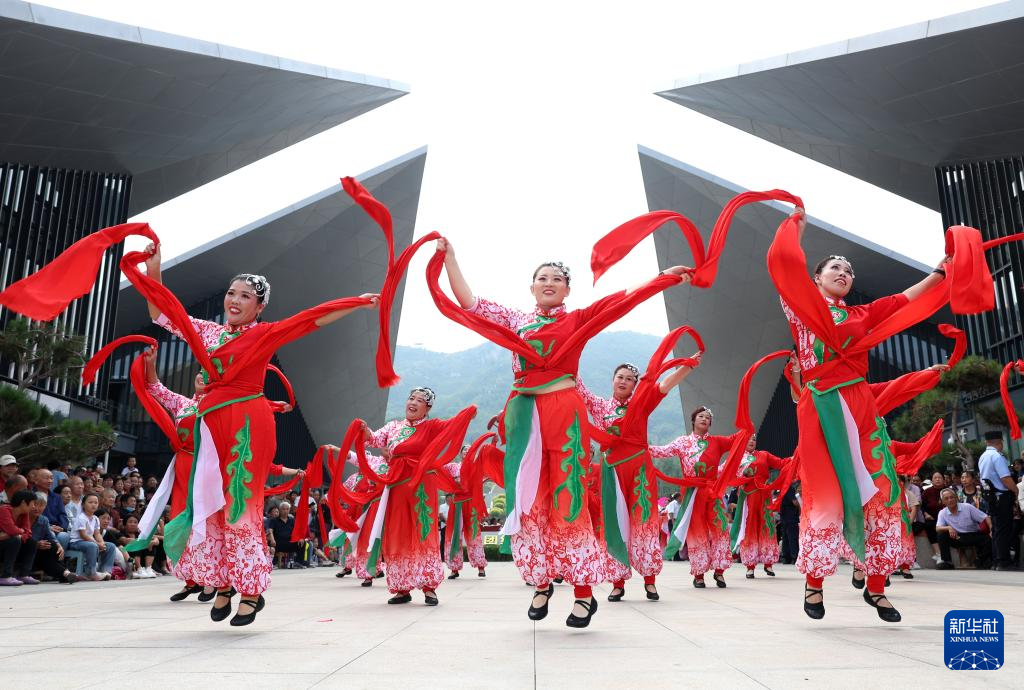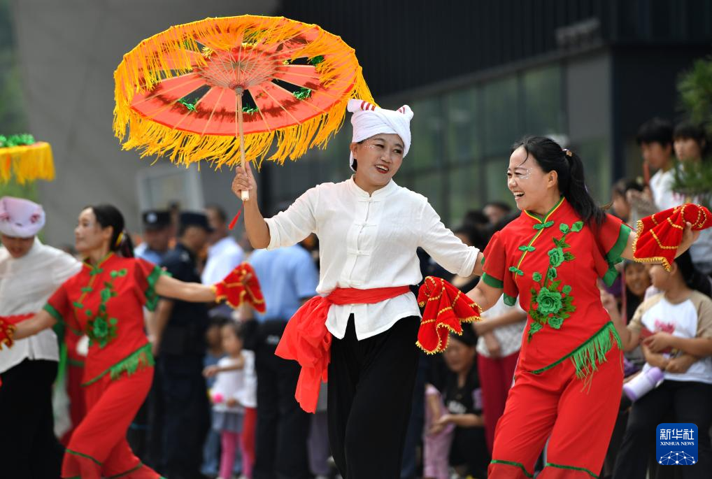 9月17日,在河北省石家莊市平山縣光祿山風景區,當地群眾(zhong) 為(wei) 遊客表演秧歌。