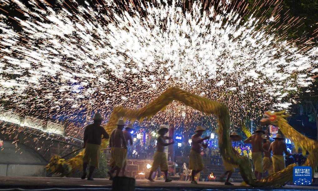 9月16日,四川省成都市雙流區黃龍溪古鎮,當地藝人為(wei) 遊客表演國家級非遺“火龍燈舞”。