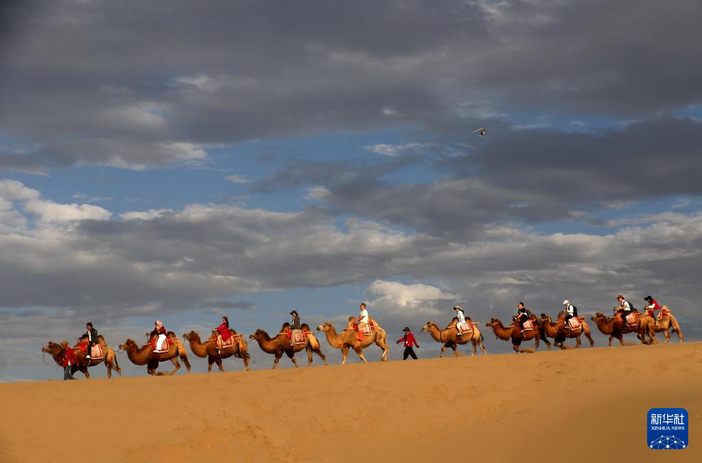 9月16日,遊客在甘肅省敦煌市鳴沙山月牙泉景區遊覽。